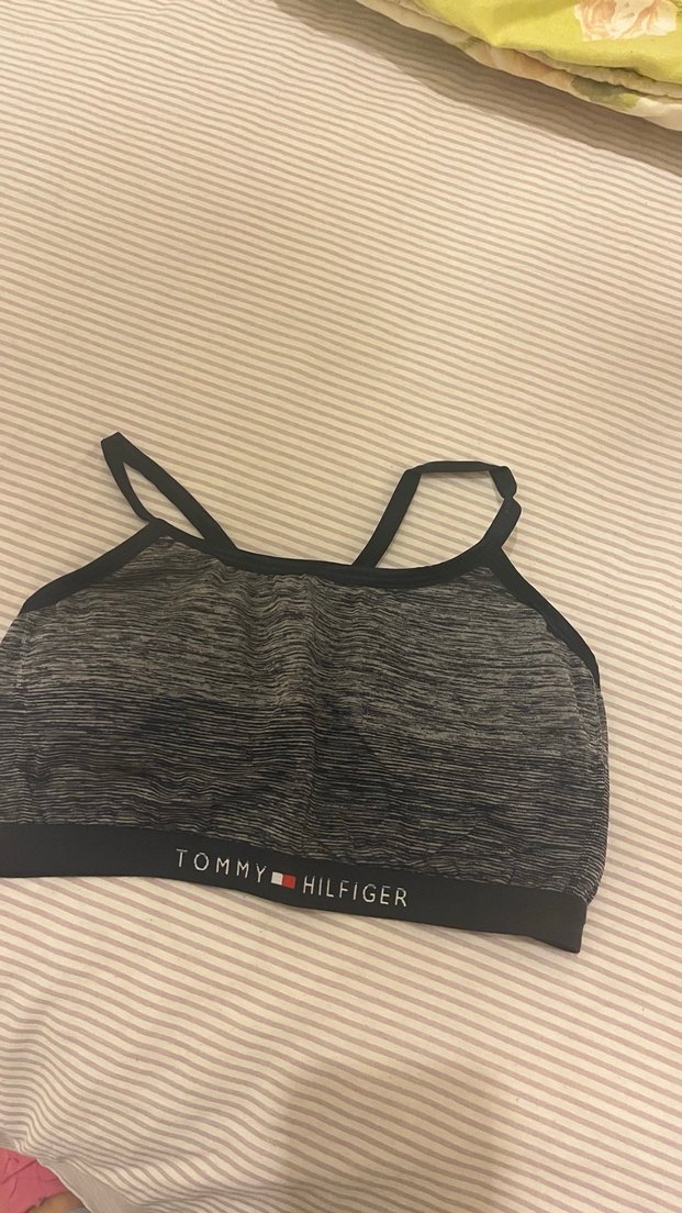 Tommy Hilfiger gri spor büstiyer, dar kesim, ince askılı ve yüksek yakalıdır. Elastik sentetik kumaştan yapılmış, baskılı desene sahiptir. Kısa boy ve cesur sokak stili için uygundur. ️♀️