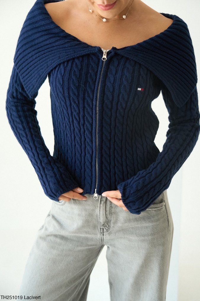 Tommy hilfiger Kadın Lacivert Örgü Fermuarlı Triko