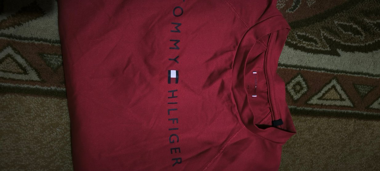 Tommy Hilfiger erkek koyu kırmızı renkte ve baskılı detaylarla dikkat çeker. Sokak stili ve athleisure için uygun, normal midi boyundadır.