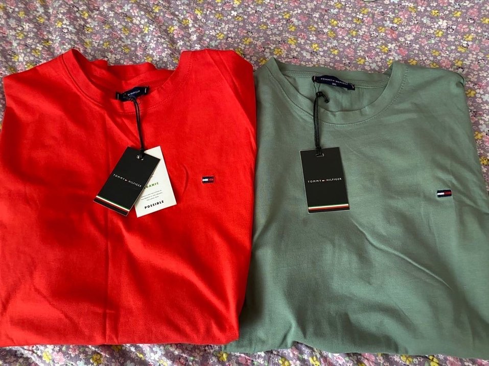 Tommy Hilfiger kırmızı ve gri renklerde, pamuklu, kısa kollu ve bisiklet yakalı erkek tişörtleri. Rahat kesimi ve baskılı detaylarıyla günlük için uygun. Orijinaldir. İki kol altı 60 uzunluk 87 cm ikili fiyattır.