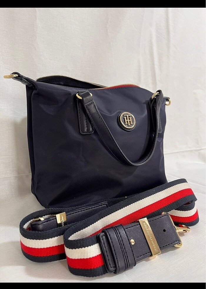 Tommy hilfiger kol çantası yan da tek kol kullanımınada müsait çok çantam olduğundan fazla takmadım Boyner den aldım orijinaldir. Kol kısmı kısaltma olmadığı için uzundu sadece çantacıda orayı kısaltım daha güzel oldu. Çantada hiç bir sıkıntı yok