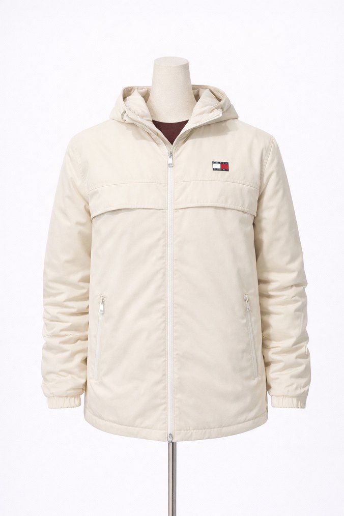 Erkekler için beyaz renkli, fermuarlı, regular fit street wear ceket. Uzun kollu, notched lapel yaka ve midi boyda, yumuşak ve sıcak kumaştan üretilmiştir. Günlük kullanıma uygundur.