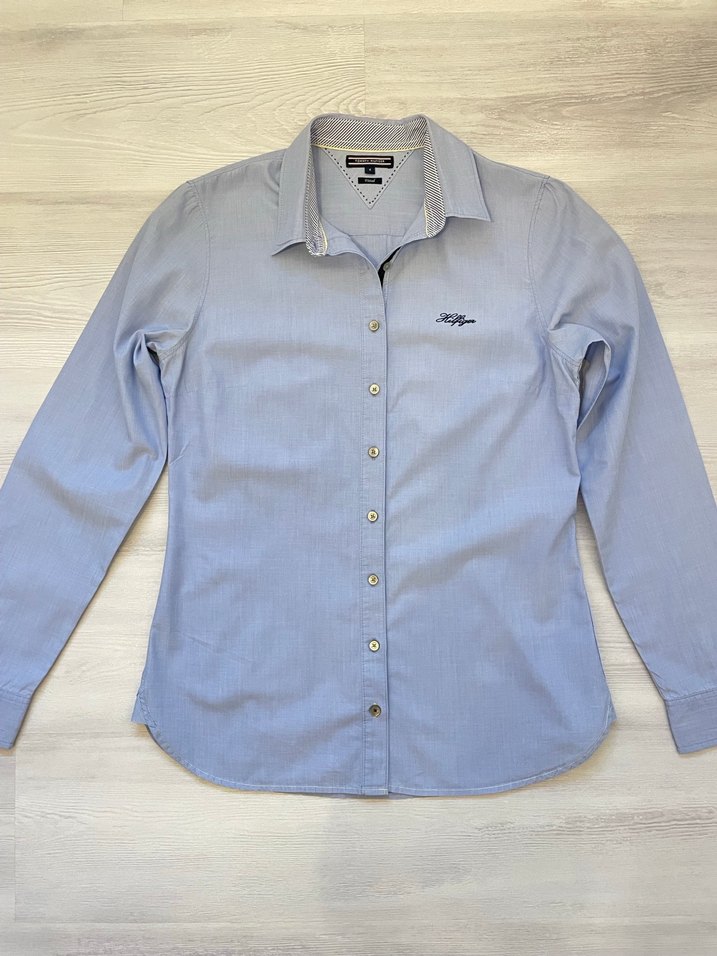 Tommy Hilfiger Kadın Gömlek, Orjinaldir, Temiz ve az kullanışmıştır, Herhangi bir deformasyon yoktur, Dokulu tok bir kumaşı vardır, S - 36 beden, Ölçüleri: en 47cm, boy 65cm, Detaylı iç etiket fotoğraflarda mevcut, Mavi renk, Sarı ip detaylı
