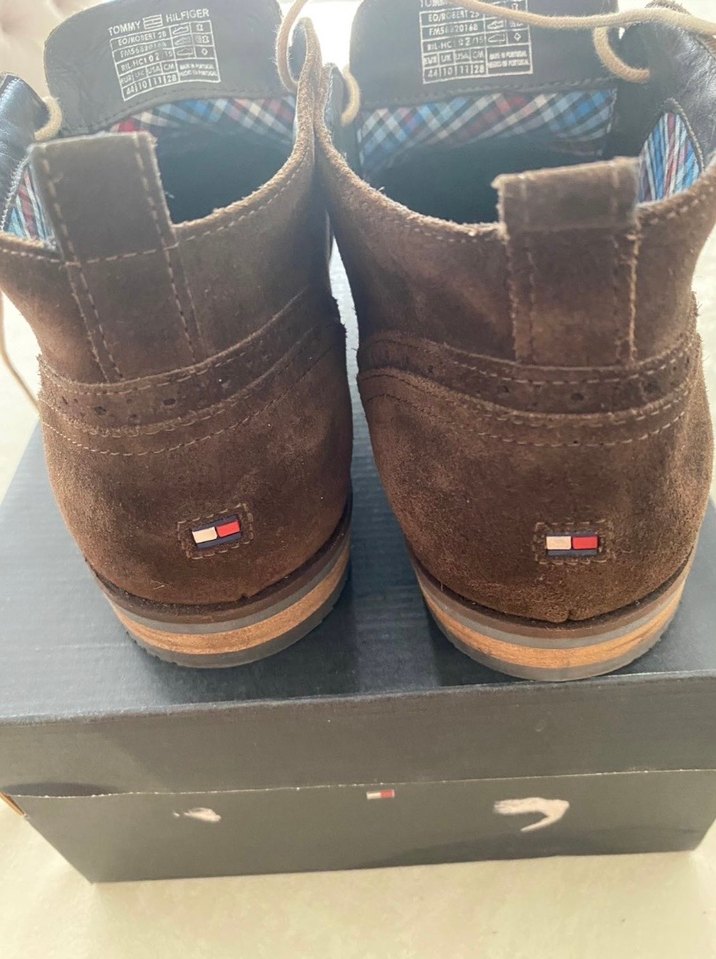 Tommy Hilfiger, Robert 2B Suede / Desert Boot, Kahverengi (Brown), %100 Hakiki Süet. Tommy Hilfiger'ın en çok tercih edilen kahverengi süet desert bot modelidir. Şık ve zamansız tasarımıyla her türlü günlük ve yarı-resmi kombine uyum sağlar. Topuk kısmında Tommy Hilfiger şerit detayları ve logosu mevcuttur. Orijinal kutusu ile birlikte gönderilecektir. "Kondisyonu çok iyidir, az kullanılmıştır.”