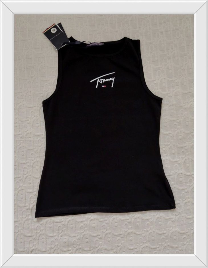 Tommy hilfiger dar kesim, siyah renkli ve baskılı kolsuz tshirt atlet. Yuvarlak yaka ve kolsuz tasarımıyla rahat ve şık bir görünüm sunar. Günlük kullanıma uygundur. bedenleri bulunuyor etiketli ürün