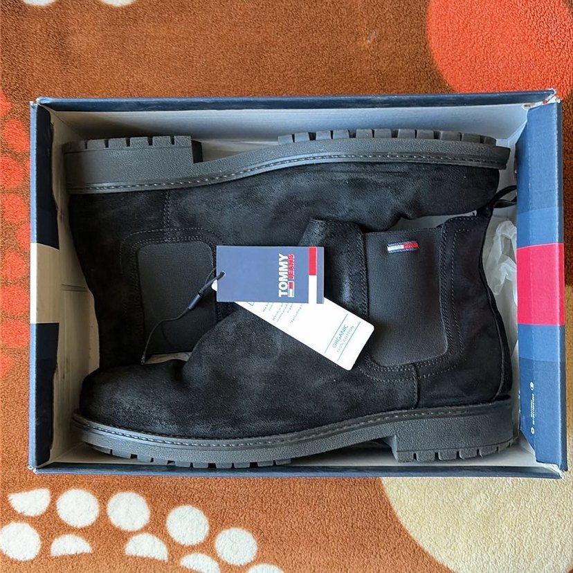 Classic Tommy Jeans Chelsea Boot Tüm detayları fotoğraflarda mevcuttur, tabanında görüldüğü üzere sadece toz vardır eskime veya erime yoktur, 2/3 kere kullanıldı sadece büyük geldiği için satışa konmuştur.
