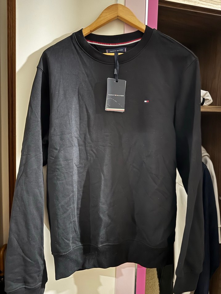 Tommy Hilfiger siyah erkek sweatshirt, yuvarlak yaka, uzun kollu ve bol kesimdir. Yumuşak, sıcak kumaştan yapılmış, gündelik kullanım için sade ve desensizdir. Etiketli ürün