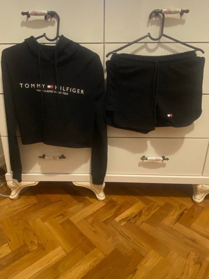 Tommy Hilfiger markalı, baskılı logolu, uzun kollu, bisiklet yaka, siyah eşofman takımı. İnce kesimi ve yumuşak dokusuyla rahat ve şık görünüyor.
