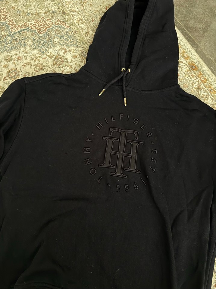 Tommy Hilfiger marka, kapüşonlu, baskılı logolu, uzun kollu, bol kesim siyah sweatshirt. Yumuşak ve sıcak kumaştan, günlük kullanıma uygun. Fiyatı: 86$