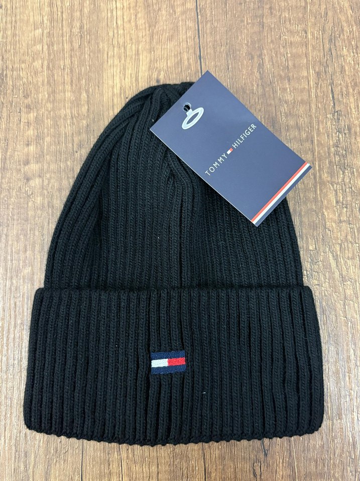 Tommy Hilfiger siyah örgü bere, yumuşak ve sıcak kumaşıyla rahat sokak stili için küçük logo detayına sahip.