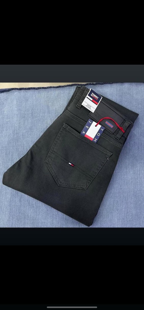 Tommy Hilfiger erkek siyah denim kot pantolon, regular fit ve kemerli. Baskılı detaylara sahip, günlük sokak stiline uygun normal boyda.