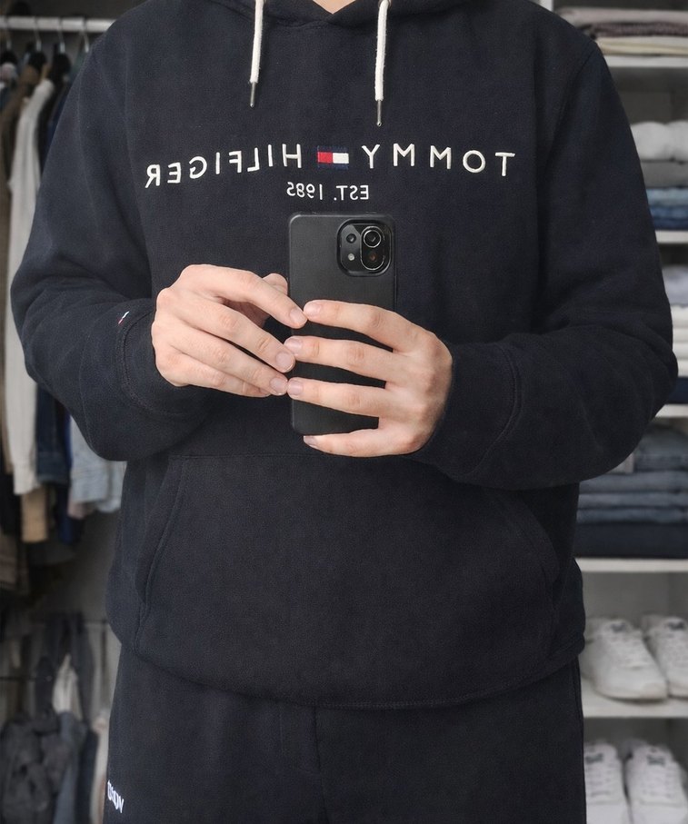 Tommy Hilfiger marka, siyah uzun kollu ve bisiklet yaka sweatshirt. Göğüs kısmında baskılı logo bulunur. Yumuşak tüylü kumaştan.