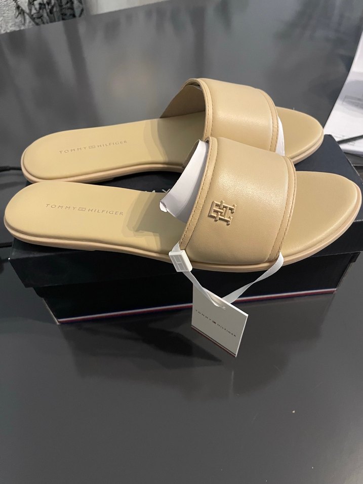 Tommy Hilfiger terlik, bejle ten rengi arası bir rengi var, her renkle uyum sağlar