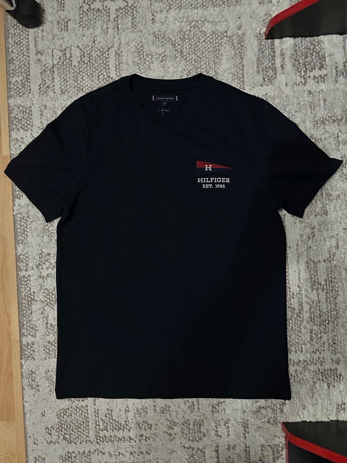Erkekler için siyah kısa kollu crew neck tişört, 'HULPIGER' baskılı logo ile. Rahat kumaş, günlük dış mekan kullanımı için uygun. orjinal giyilmedi sıfır