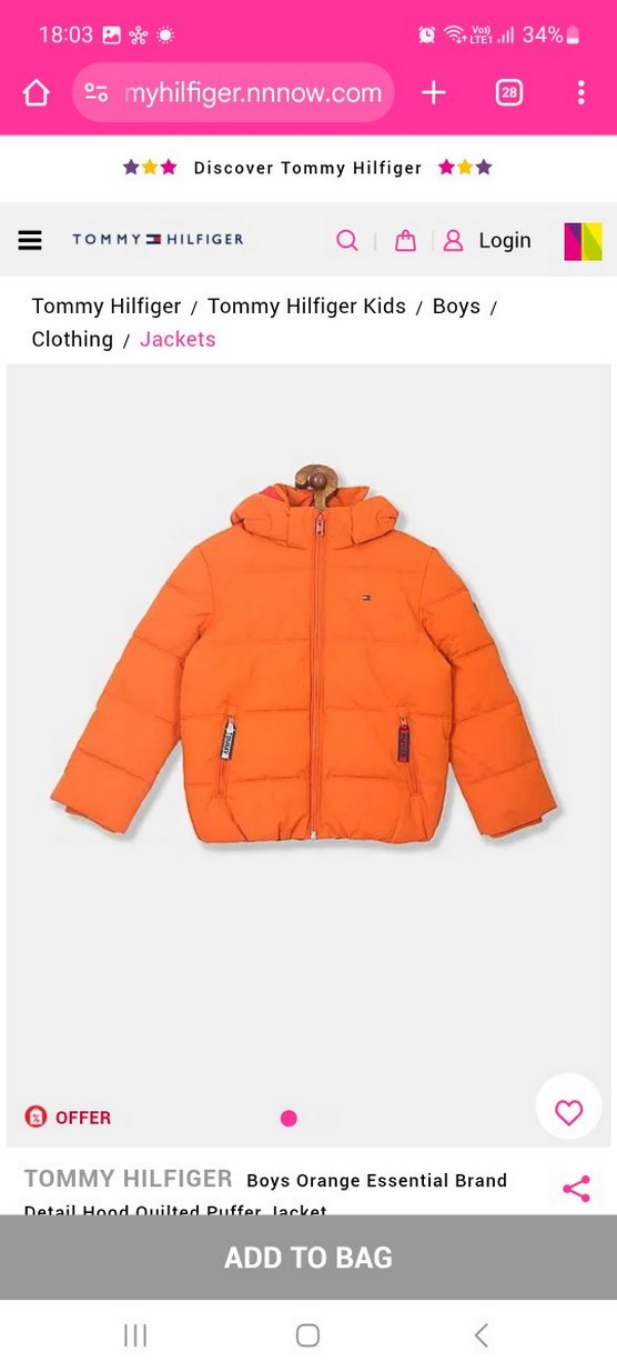 Tommy Hilfiger turuncu kapüşonlu, fermuarlı, yumuşak ve sıcak kumaştan, regular fit erkek çocuk montu. Sokak tarzı ve sade tasarım.