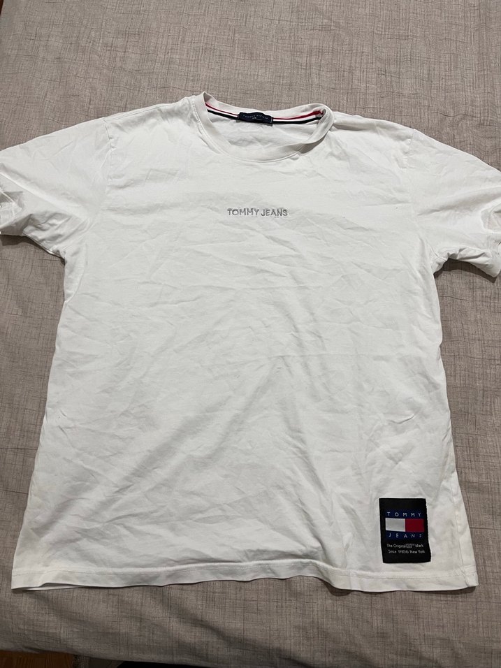 Tommy Jeans beyaz kısa kollu tişört, yuvarlak yaka ve rahat kesime sahip. Yumuşak keten kumaştan üretilmiş, göğüste baskılı logo ve etek ucunda küçük etiket bulunur. Yurtdışından alınmıştır bedeni olmamıştır.