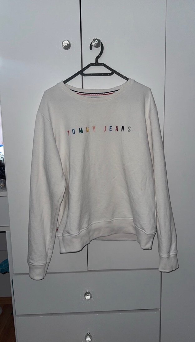 Pamuklu, uzun kollu, bol kesim Tommy Jeans sweatshirt. Beyaz pastel renkte, baskılı logo detayıyla rahat sokak stili için uygun.
