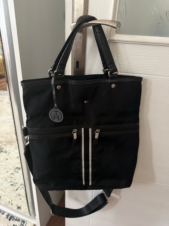 Orijinal tommy Marka kadın çanta, fermuarlı bölmeleri ve baskılı deseniyle trend sokak stiline uygundur. laptop çantası olarak bile kullanılabilir uzun askısını kaybetmişim ama kendimden uzun Askı göndereceğim bazı yerleri deri hiçbir şekilde soyulma dökülme yok derisinde yırtık sökük hiçbir şey yok çok az kullanıldı  yeniden farksız