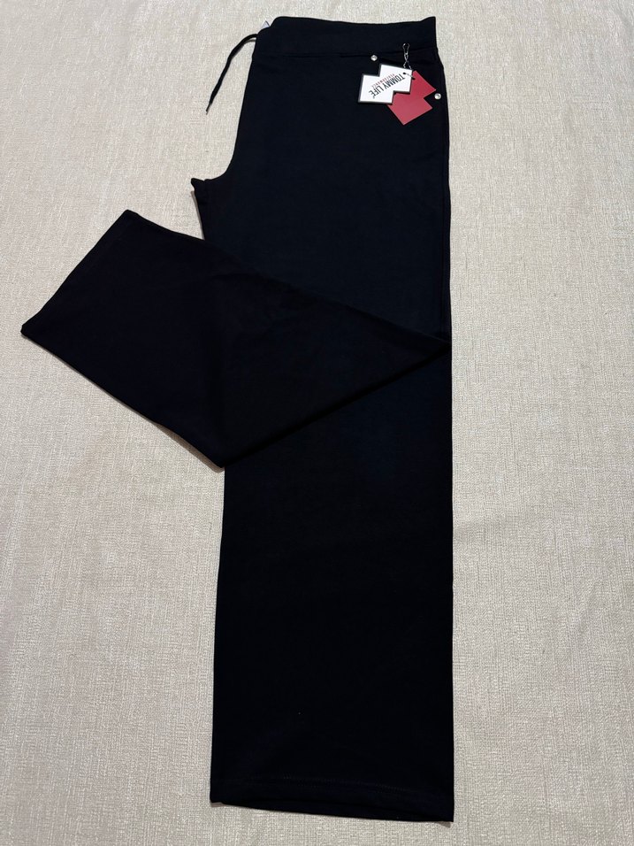 Siyah renkte, elastik bel bantlı, Likralı kumaştan üretilmiş, normal kesim kadın eşofman. 54 beden mevcut