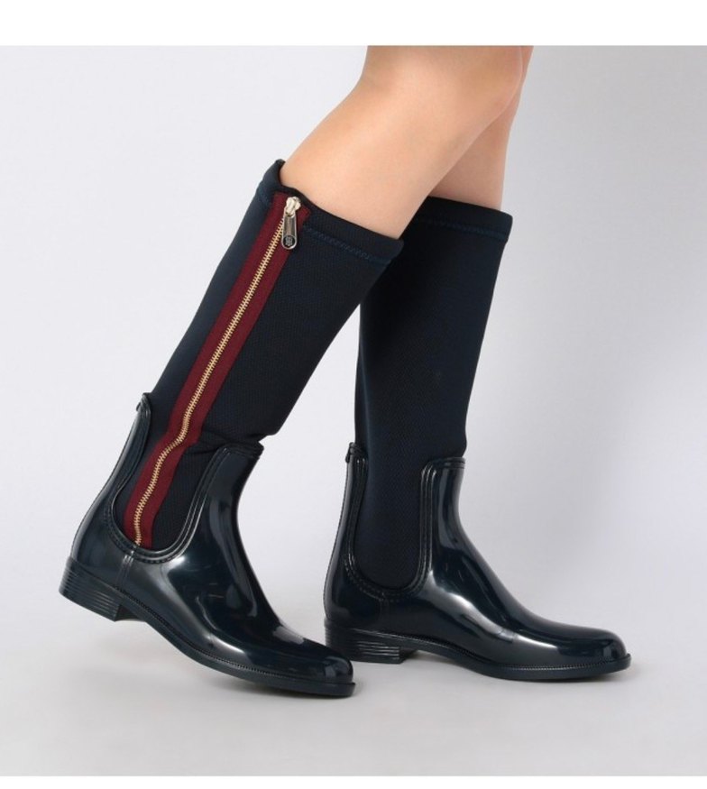 TOMMY Siyah Çizgili Dizüstü Lastik Çizme