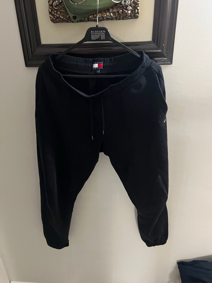 Tommy altı yırtık kestirip şort yaptırabilirsiniz Siyah, rahat kesim, elastik bel bantlı, yumuşak ve sıcak kumaştan üretilmiş kadın eşofman altı, spor ve günlük kullanım için uygundur.