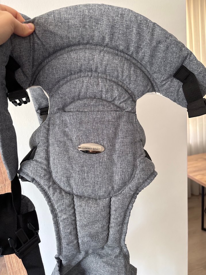 Gri renkli bebek taşıyıcı, konfor ve güvenli kullanım için dolgulu destek ve ayarlanabilir kayışlara sahiptir. Çok az kullanıldı, temiz kusuru yok. Bel destekli, kolay kullanım sunar