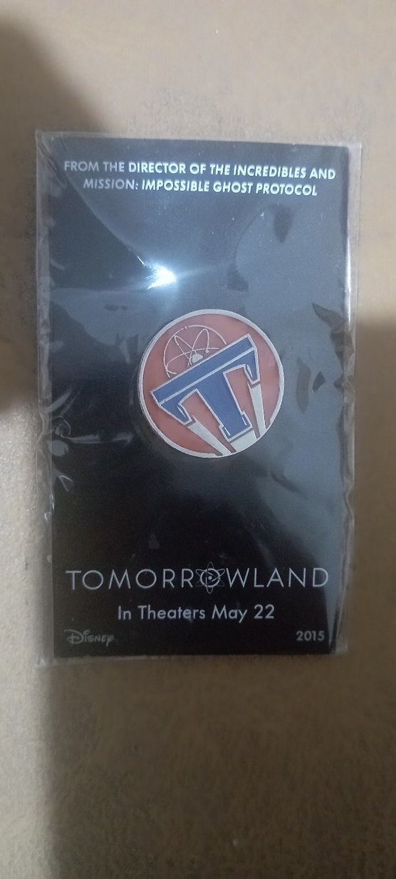 2015 yapımı Tomorrowland filmine ait siyah vintage tarzda gümüş erkek rozeti, koleksiyon için uygun.