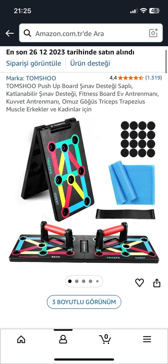 TOMSHOO katlanabilir push-up tahtası, omuz, sırt, triceps ve göğüs için renk kodlu. Evde fitness için direnç bantları ve aksesuarlar içerir.