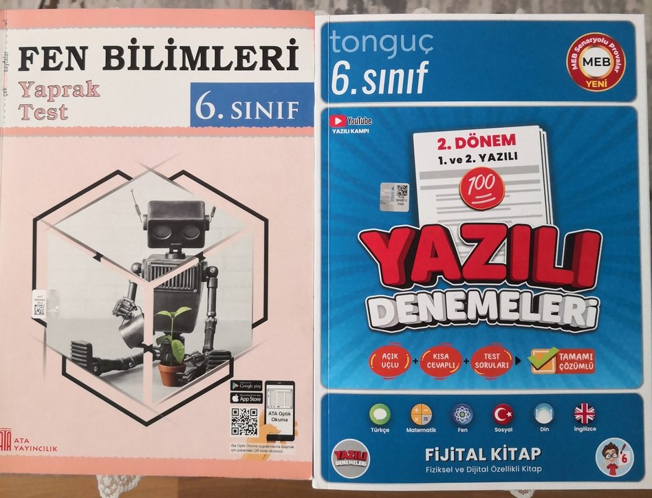 Tonguç yazılı denemelerinin birkaç sayfası çözülmüştü silindi hafif kalem izleri var, diğer test kitabınında ilk birkaç testi çözülmüştü o da silindi. Fotoğrafları inceleyin lütfen.Bunların dışında yırtık, yıpranma yoktur.Basım yılı 2023-2024 müfredata uygundur. Beraber satılmaktadır.