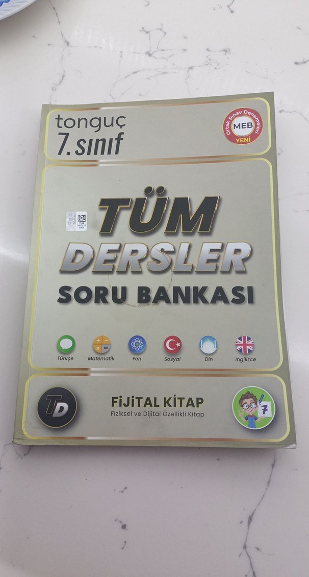 Tonguç 7. sınıf tüm dersleri kapsayan soru bankasıdır. Fiziksel ve dijital kitap özelliklerine sahiptir. Türkçe, Matematik, Fen, Sosyal, Din ve İngilizce içerir. çok az çözülmüş toplam 20 sayfa bike değil isteyene detaylı fotoğraflarını atarım lütfen ciddi alıcılar yazsın