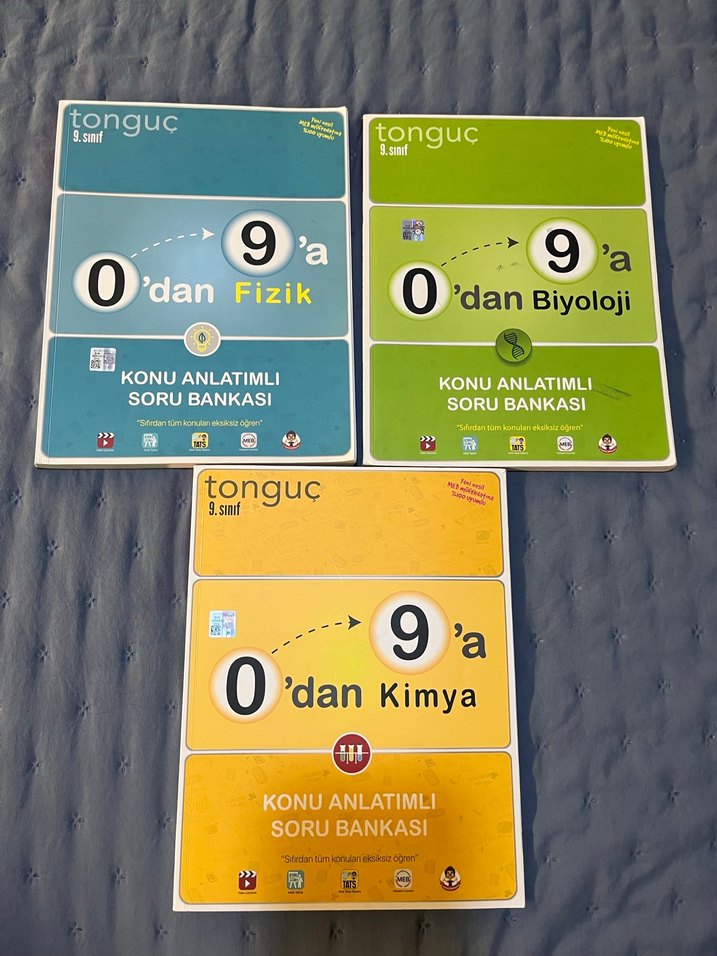 Tonguç 9. sınıf Fizik, Biyoloji ve Kimya konu anlatımlı soru bankasaso seti. Kitapların içi boştur . Toplu fiyattır