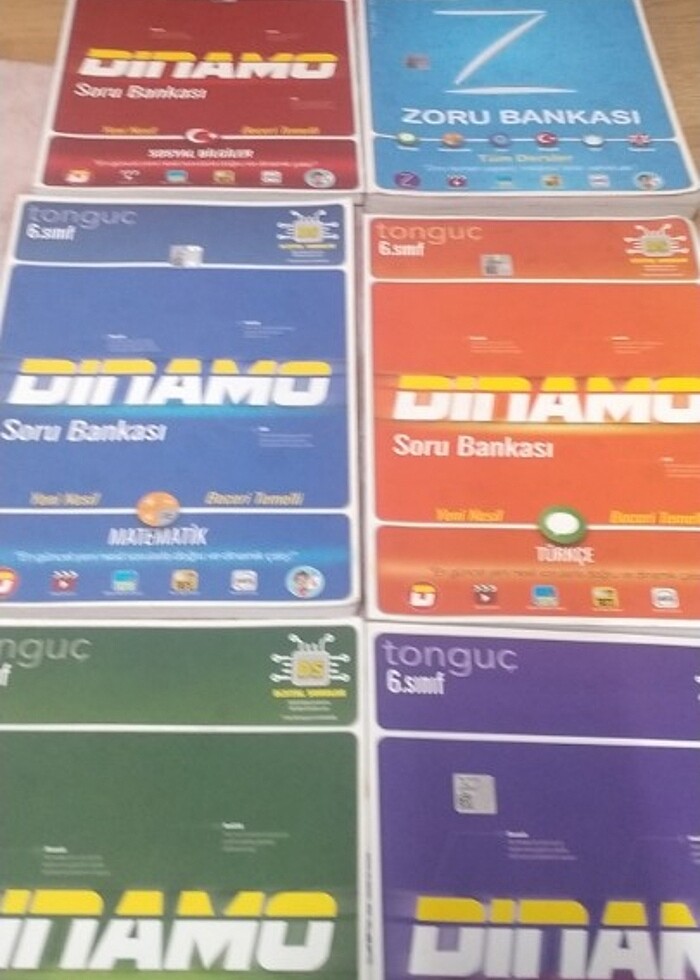 Az kullanılmış Türkçe dinamo40 sayfa yapılmış 60 TL İngilizce dinamo 24 sayfa yapılmış bazı sayfalar silinmiş 70 tl Fen bilimleri dinamo 50 sayfa yapılmıs fakat farklı sayfalarda sorularda çözülmüş 55 tl Matematik dinamo 20 sayfa yapılmış 70 tl Sosyal dinamo 14 sayfa yapılmış 70 tl Zoru bankası 100 sayfaya yakın yapılmış 40 tl