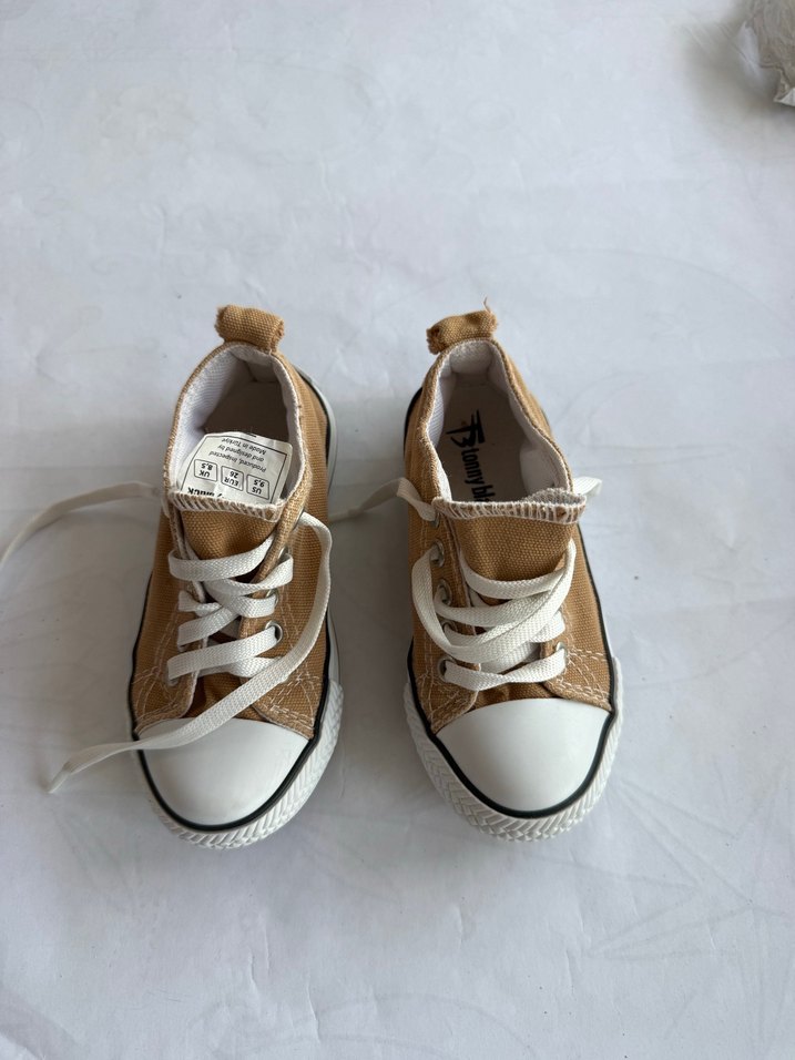 Bej tonlarında çocuk sneakers, kauçuk tabanlı, rahat ve şık sokak stili sunar. Günlük kullanıma uygun, sade ve rahat tasarım.
