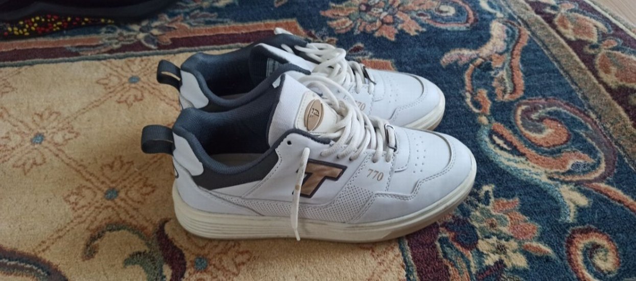 Çok temiz Gri detaylı beyaz kadın spor ayakkabısı, bağcıklı ve düz tabanlıdır. Spor için uygun rahat sokak stili sunar.