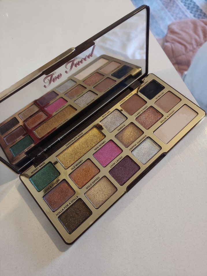 Too Faced marka, içinde altın, yeşil, mor ve diğer koyu tonlar bulunan far paleti. Uygulama için ayna içerir. Kullanılmadı sayılır.