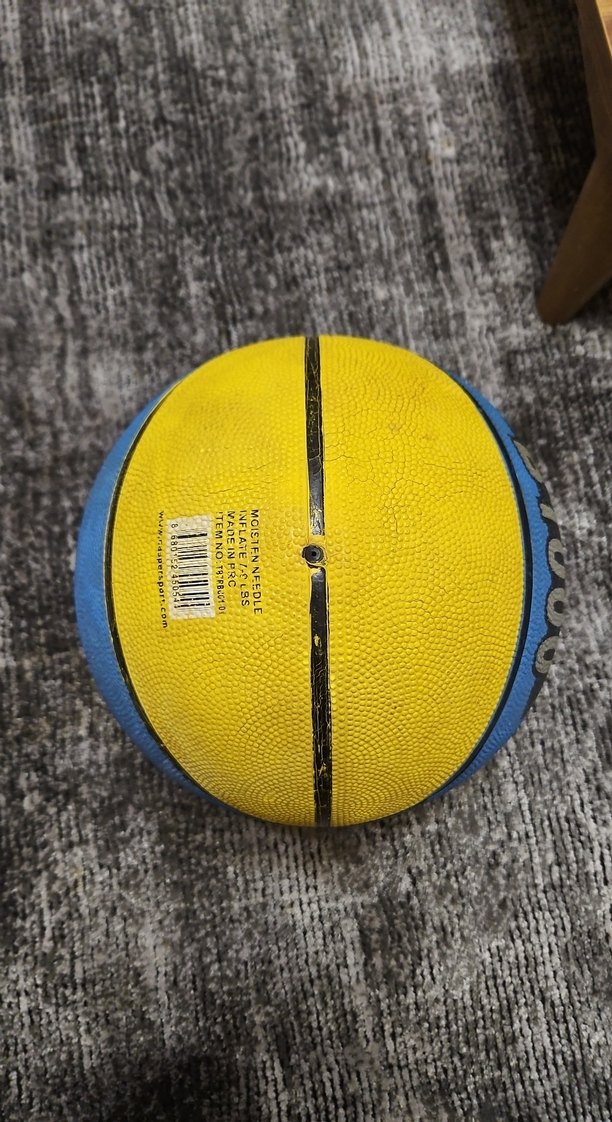 Bu sarı basketbol topu, kauçuk yüzeye sahip renkli ve desen içermeyen sade bir tasarımla spor ve gündelik kullanım için uygundur.