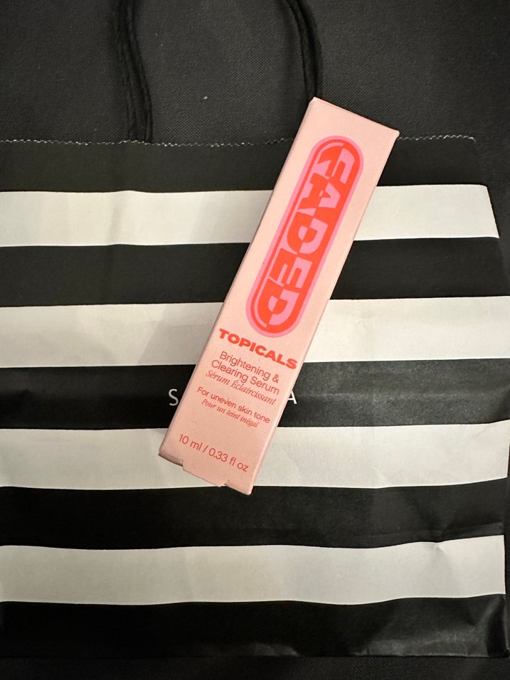 Pastel pembe renkli, aydınlatıcı ve temizleyici serum . 10 ml hacminde ve tüm cilt tiplerine uygundur. Ambalajında 'FADED' yazısı bulunur.