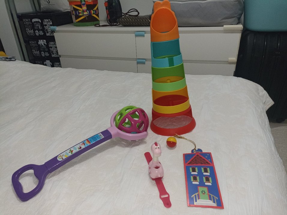 TOPLAM 4PARÇA . PİLLİ PROJEKSİYON DİNAZORLU, TOP KULESİ, ÇINGIRAKLI TOP SURME herhangi büyük bir sorun yoktur. ️#oyuncak #araba #davul #eglence #cocuk #bebek