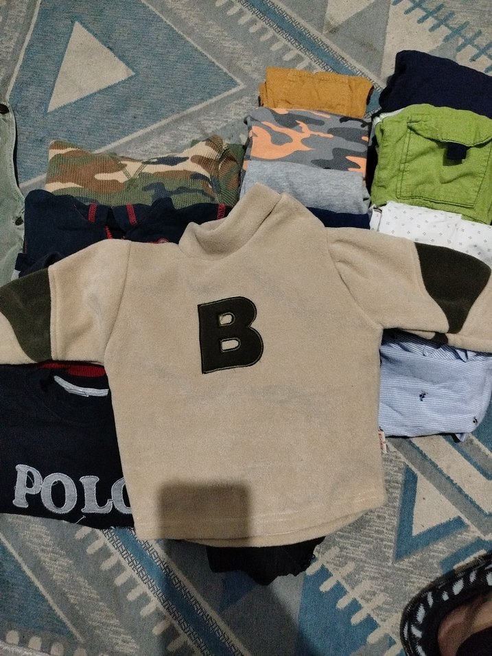 toplu erkek çocuk 12-18 ay kıyafetleri 1 adet kot tulum 1 adet polar üst 1 adet pantolon 2 adet gömlek bir kısa kollu bir uzun 5 adet alt eşofman 3 adet uzun kollu kalın üst 1 adet fermuarlı kapşonlu 1 adet düğmeli ceket 1 adet kısa kollu yelek eşofmanlardan 2 tanesi gri ve siyah olan yıkanabilir çıkan lekeler var sonradan oluşmuş yırtık vesaire hiçbir şekilde yok hiçbirinde farklı markalar