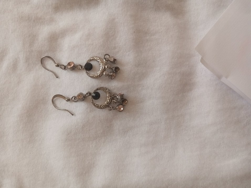 cir detaylı ve etnik desenlere sahip bohem küpeler. Bej ve gri tonlarında, vintage esintili tasarım. Düğünler için uygun.