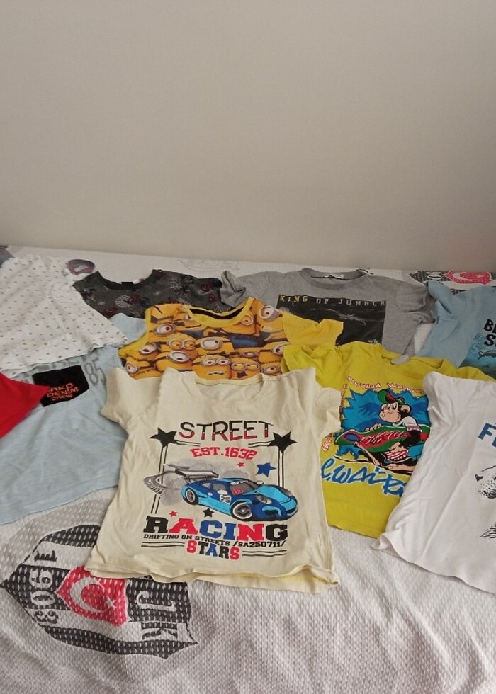 11 tişört 3 şorttan oluşuyor çoğu LC Waikiki defokto koton bazıları butikten alındı giyildi fazla sorunları yoktur bı kaçında etiket yerlerinde sökük var yan tarafinda 4 5 yas için uygundur