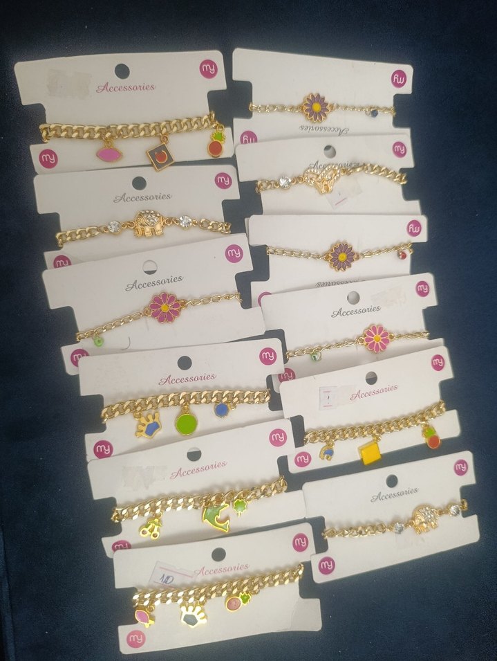 Renkli baskılı desenlere sahip zincir detaylı bohem tarz bileklikler