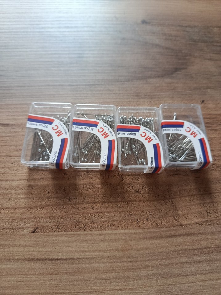 Çok renkli başlıklı metal toplu iğneler, şeffaf plastik kutularda paketlenmiştir. Dikiş ve el işleri için uygundur. 4 kutu