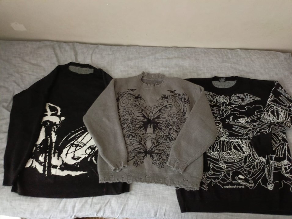 çoklu kazak fiyat sorunuz ikinci gorseldeki kahverengi kareli 300 hepsinin durumu çok iyi artık kazak giymedigim icin satiyorum Gri renkli, nakış detaylı, yuvarlak yaka ve uzun kollu triko kadın kazak, bol kesim ve rahat bohem tarzıyla günlük kullanıma uygundur.