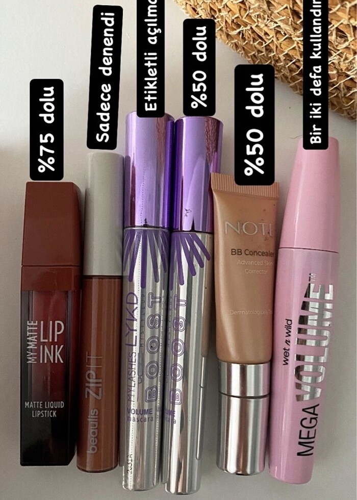 Ürün kullanımları fotoğrafta belirttim, golden rose likit mat ruj tam hatırlamıyorum 3 numara olması lazım, beaulis likit ruj nude peach rengi. Note kapatıcı 01 numara
