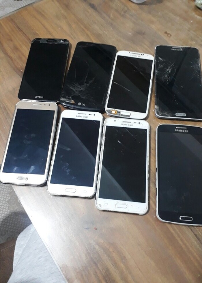 8 adet toplu satis telefon parca amacli 1.gt-i9500 bir tanecam catlak batrya yok 2.lg k430 bir tanelg yazisinda kaliyor dis cam catlak 3.vestel v5 parca 4.sm-n9000 dis cam catlak samsund yazisinda kaliyir 5.samsung j500f bir tane batarya yok parca 6.j710f ekran catlak hersey uzerinde 7.j2 iki tane ekranlar saylam parca amacli