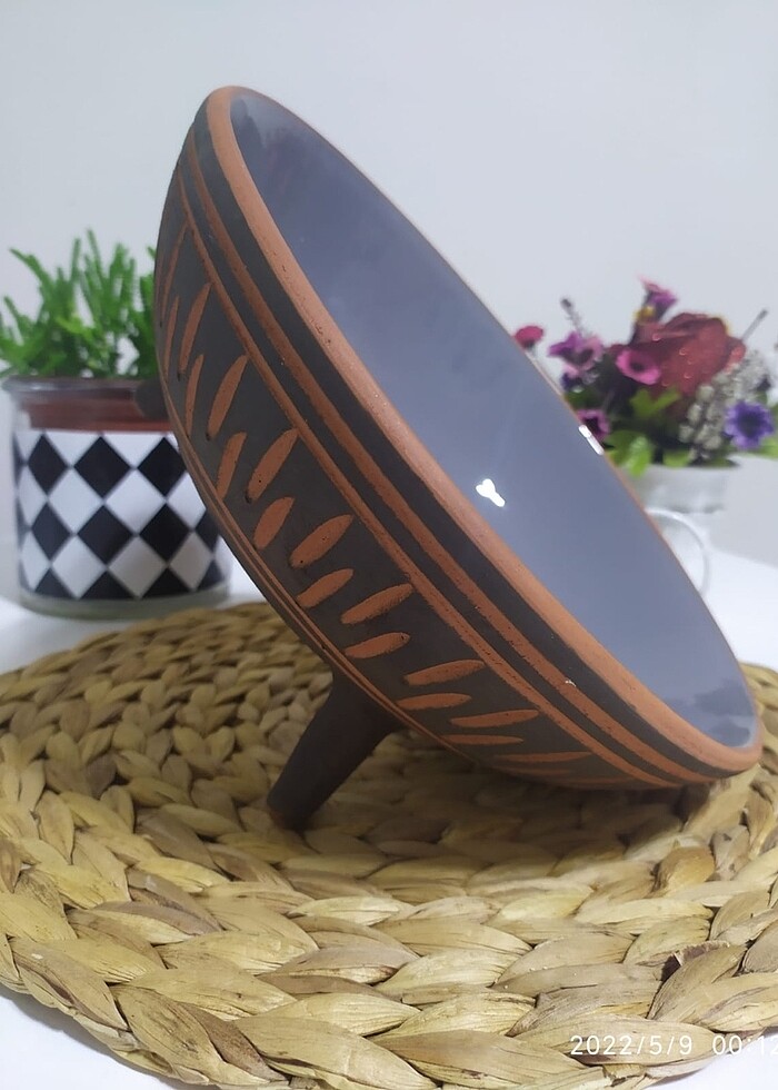 Toprak (çömlek) sunum kasesi. İster sunum seti isterseniz dekor olarak kullanın evinize renk katacak zarif bir üründür. İçerisi sır kaplama olup dışı sade bir görünüme sahiptir. Kesinlikle terleme yapmaz. Bulaşık makinesinde gönül rahatlığıyla yıkayabilirsiniz. 25 cm çap genişliğinde 10 cm yüksekliktedir. Renkler sipariş üzerine özel üretim olduğu İçin lütfen mesaj atınız.
