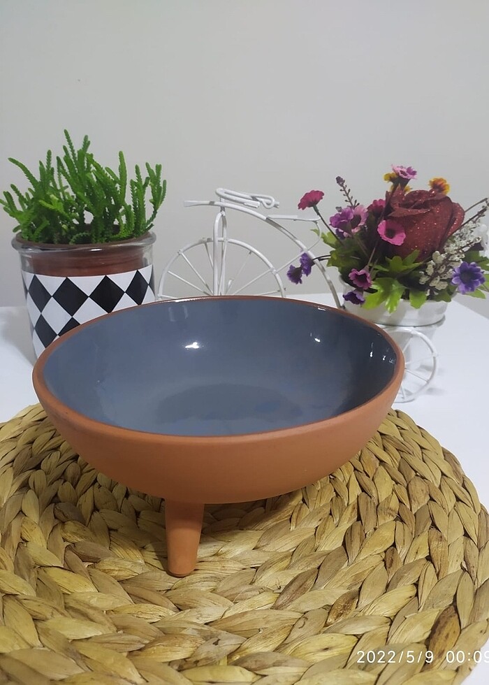 Toprak (çömlek) sunum kasesi. İster sunum kasesi isterseniz dekor olarak kullanın evinize renk katacak zarif bir üründür. İçerisi sır kaplama olup dışı sade bir görünüme sahiptir. Kesinlikle terleme yapmaz. Bulaşık makinesinde gönül rahatlığıyla yıkayabilirsiniz. 20 cm çap genişliğinde 10 cm yüksekliktedir. Renkler sipariş üzerine özel üretim olduğu İçin lütfen mesaj atınız.