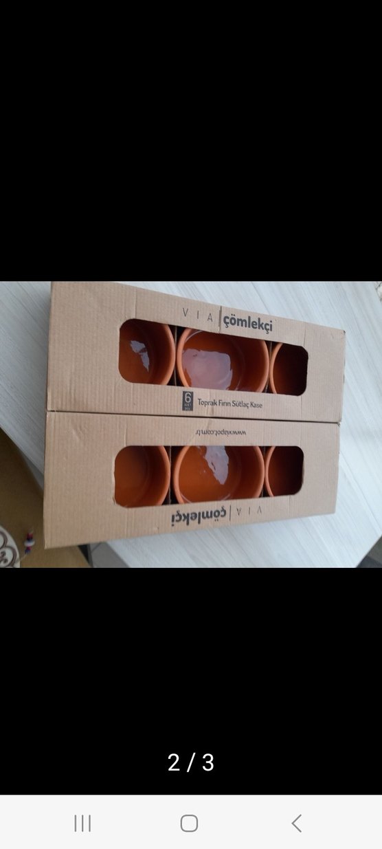 Toprak fırında kullanılabilen 6'lı bej sütlaç kase seti. Dayanıklı ve tatlı servis için uygundur. Karton kutuda, "VIA Çömlekçi" yazılı.