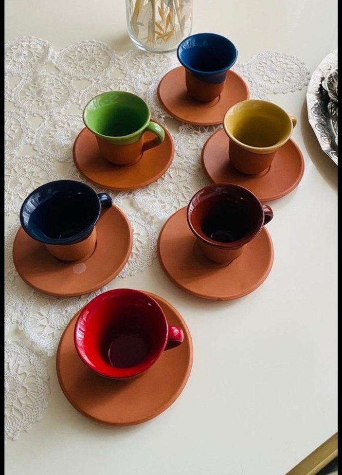 Toprak Tabanlı Renkli Seramik Fincan Seti